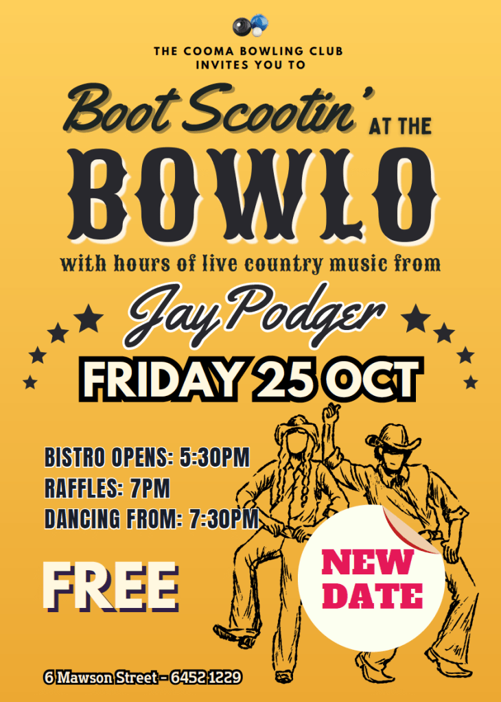 A Line Dancing social night with live country music performed by the wonderful Jay Podger. Bistro opens 5.30pm. Raffles from 7pm. Dancing from 7.30pm.